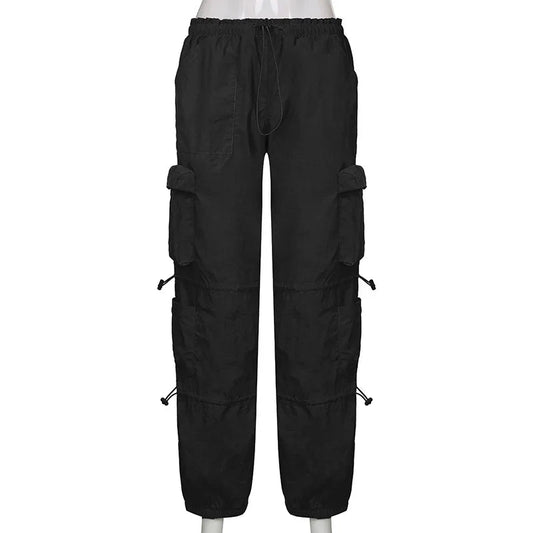 American street style design with multiple pockets, workwear with drawstring elastic and loose fit, hip-hop low waist sports pan