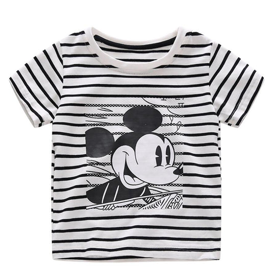 Infant Boys Girls Summer Cartoon Striped T Shirt + Denim Shorts Clothes 2pcs Sets Children Kids Hole Jeans Clothing