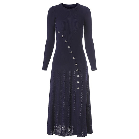 Long sleeved design with curved buttons heavy-duty elastic round neck mid east wind long dress