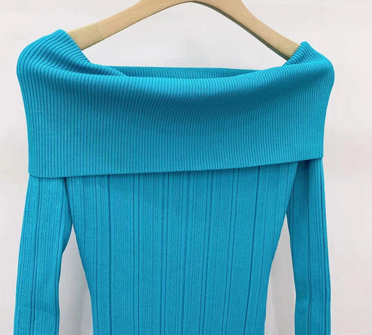 New Arrive Knitted Elastic Women Midi Dress Full Sleeve Strapless Slim Female Fishtail Dress