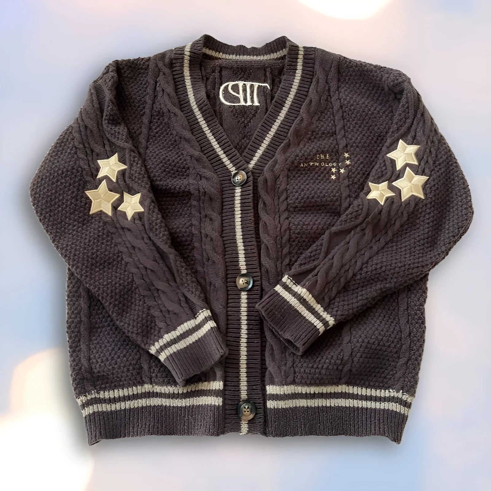 Back To School Warm Star Embroidered Loose Fit Women's Clothing Autumn Fashion Dark Brown Knitted Cardigan Women Sweater Y2k