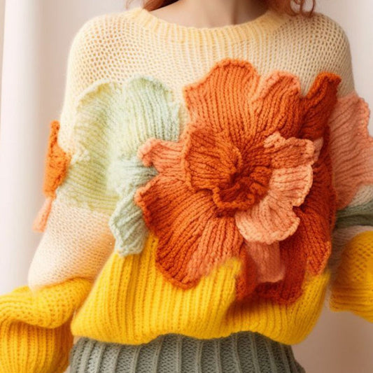European goods, beautiful heavy industry, lazy style, apricot color, three-dimensional flower knitted sweater, sweater jacket, w
