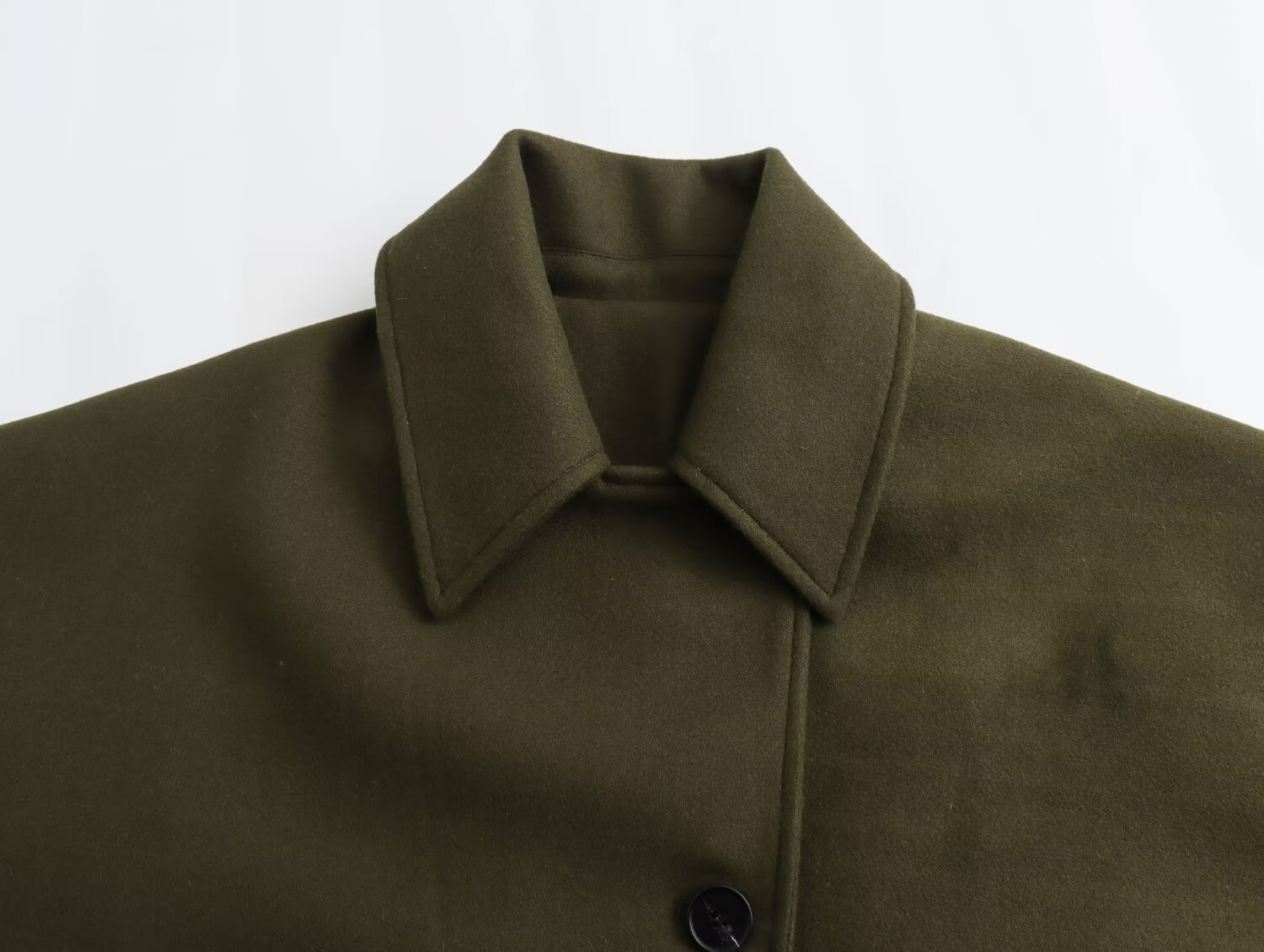 French woolen coat fashionable lapel blend short cape sleeve loose jacket