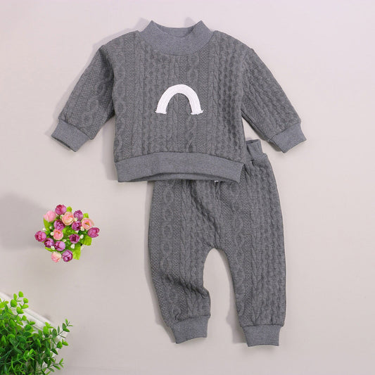 Infant Baby Girls Boys 2Pcs Fall Outfits, Long Sleeve Mock Neck Rainbow Knit Tops + Elastic Waist Pants Set 0-3Y