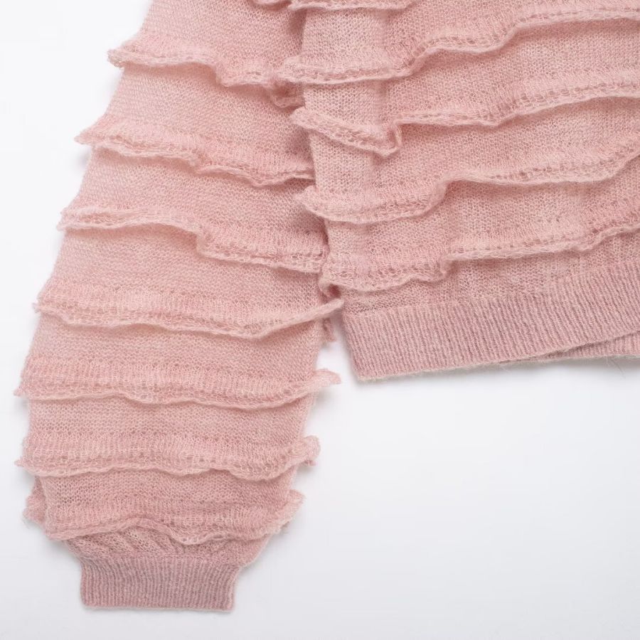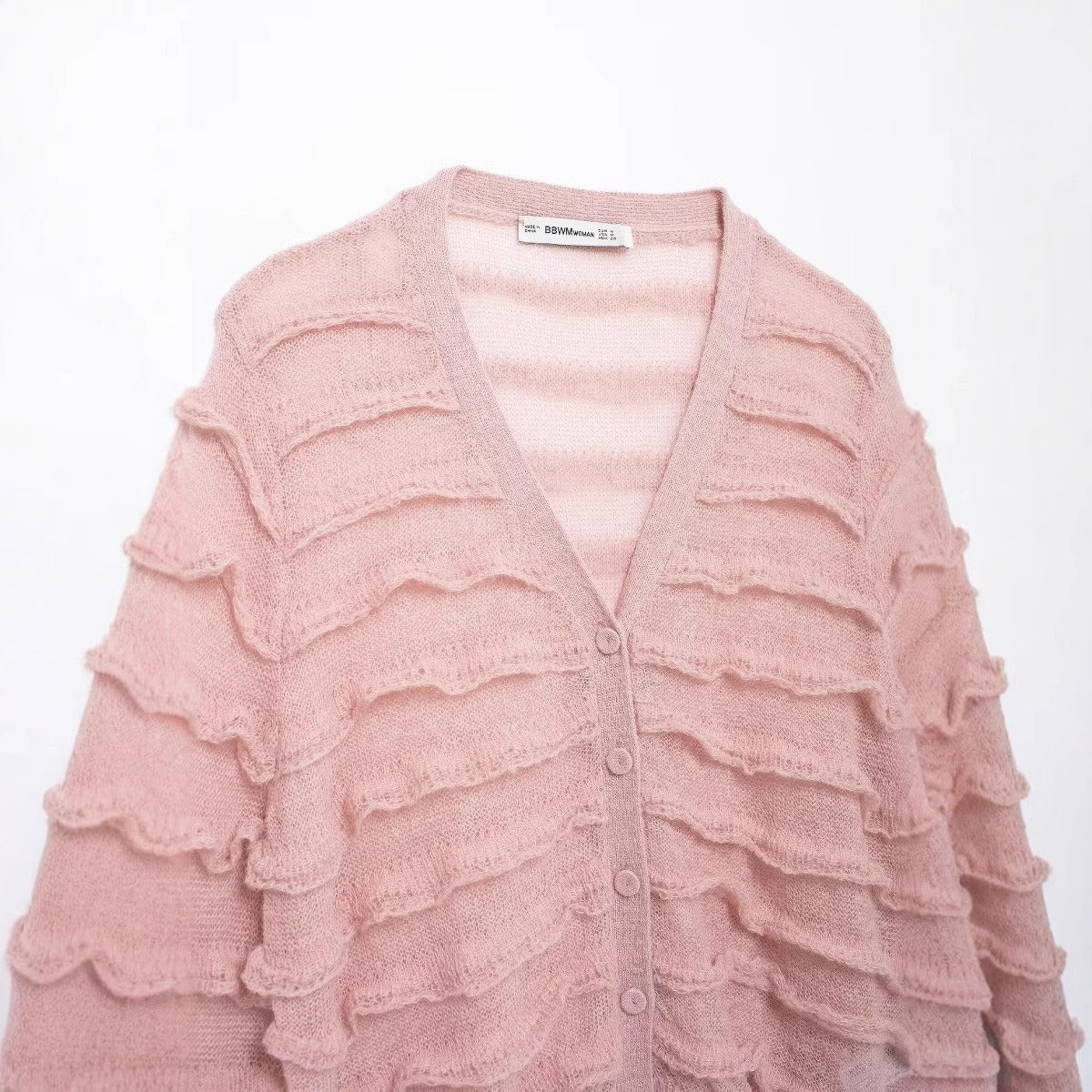 European and American autumn style V-neck long sleeved layered decoration single breasted knitted cardigan for women