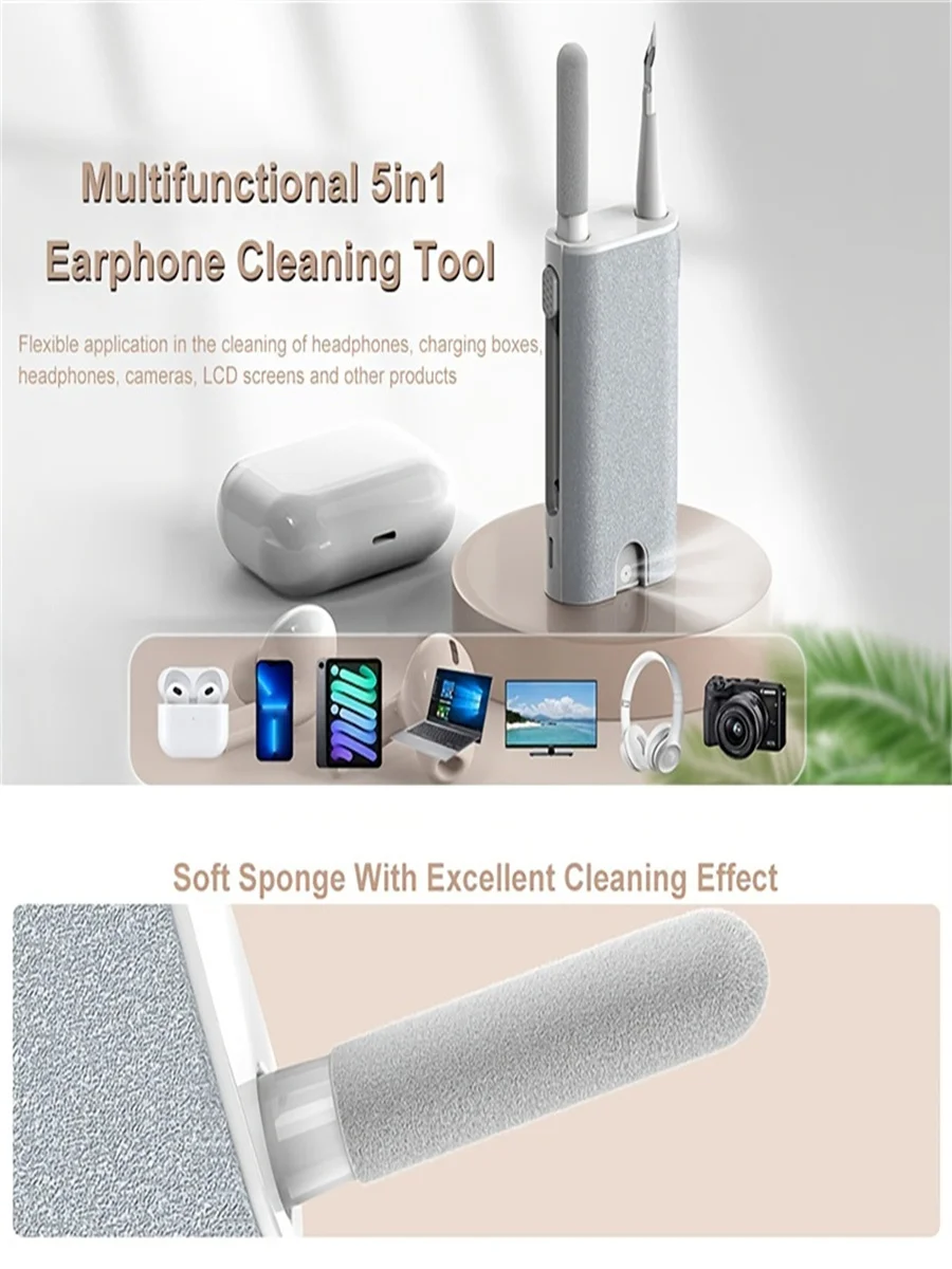 Description Product Name: Multifunctional 5 in 1 Earbuds Cleaning Pen Set.