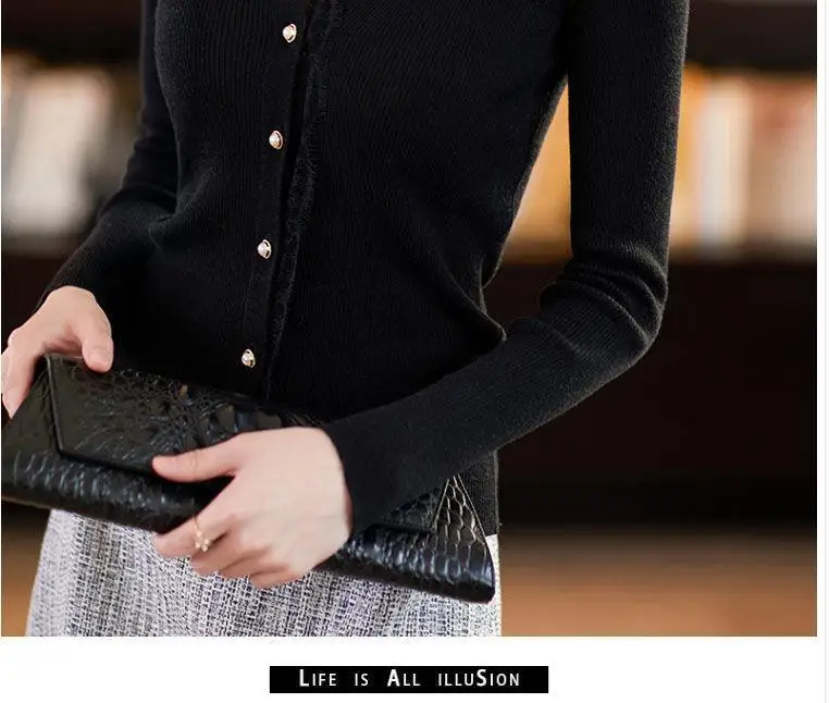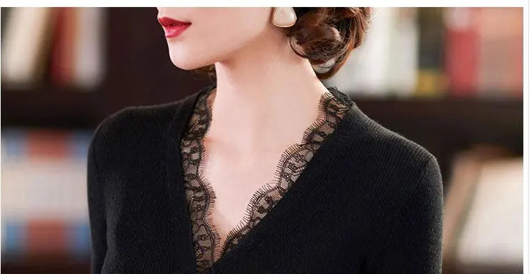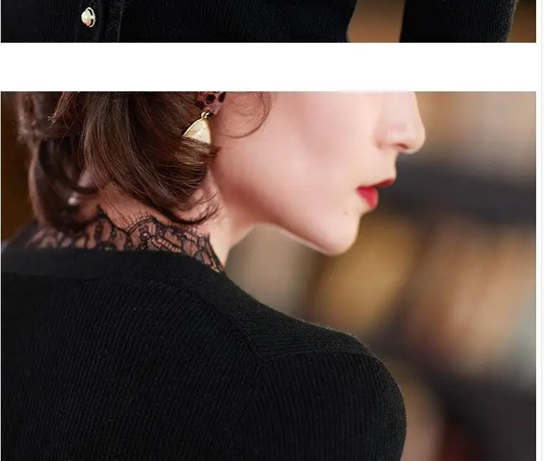 Korean Solid Color Slim Knitted Cardigan Women's Clothing Single-breasted Spring Autumn Fashion Elegant Lace Spliced Sweaters