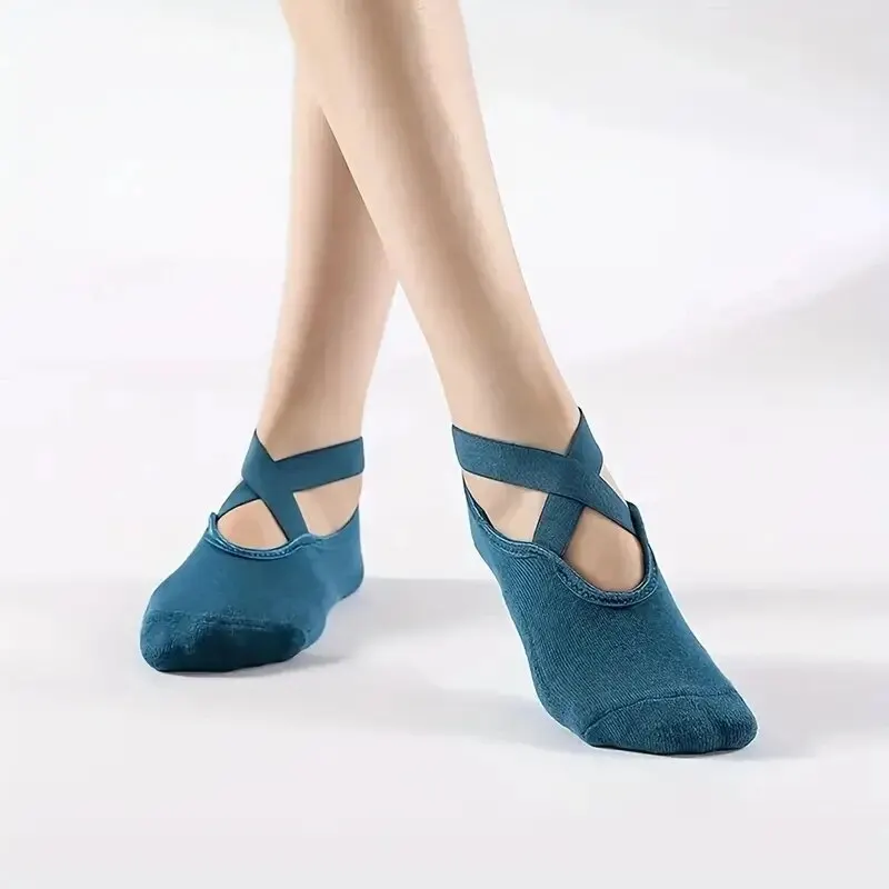 Non-Slip Pilates Socks with Bandage Cotton Backless Yoga Socks for Women Fitness Ballet Dance Workout Sports Socks Slipper