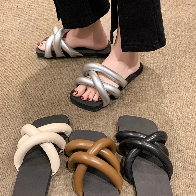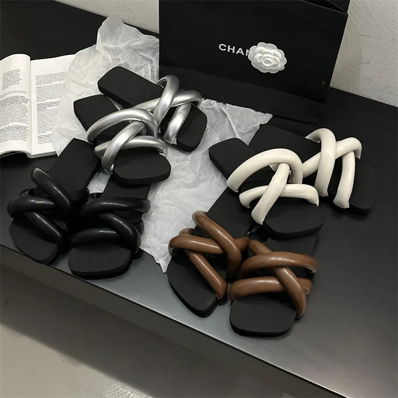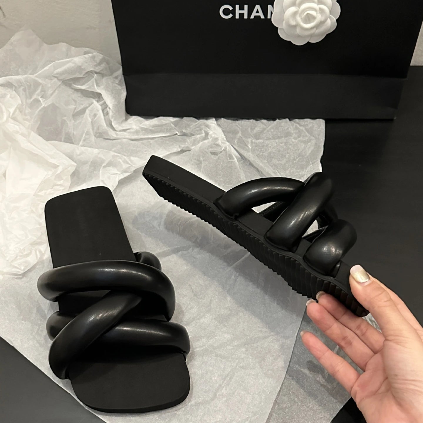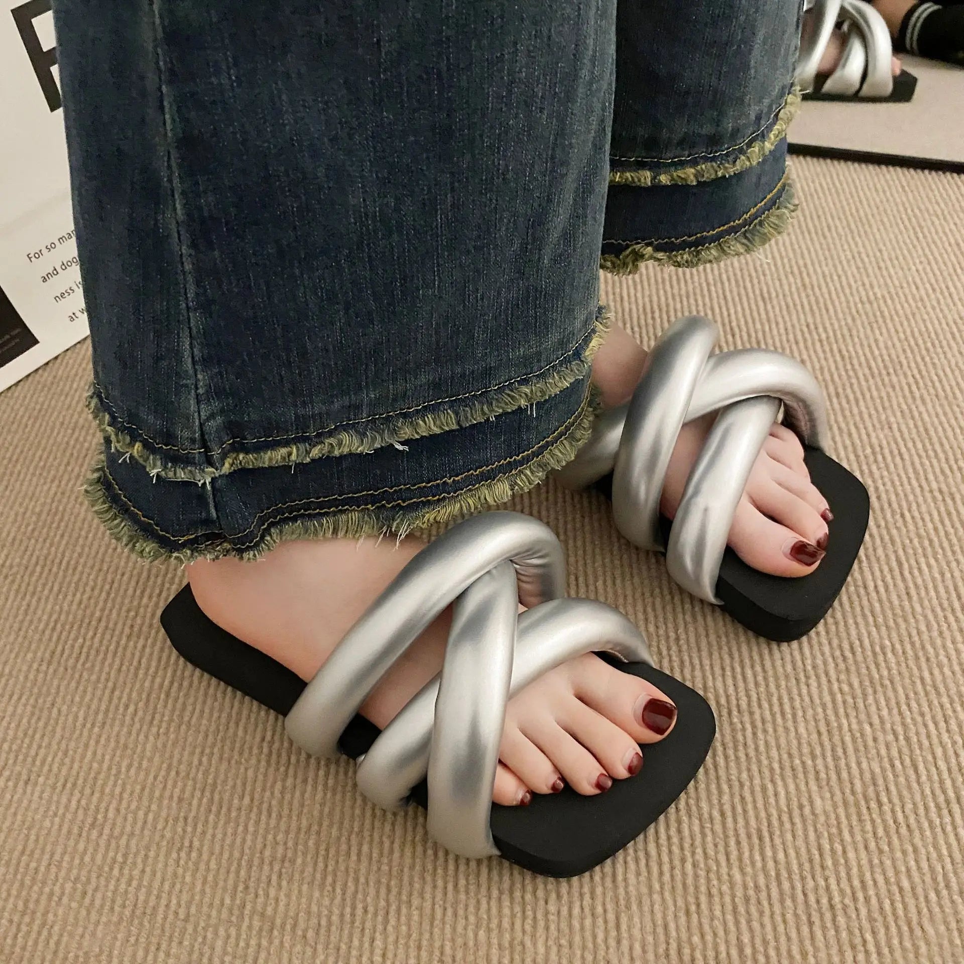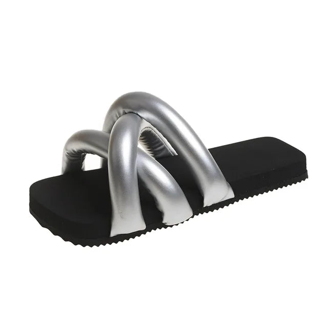 Merk Designer Slippers Zomer Nieuwe Platte Slippers Antislip Mode Zilveren Flip-flop Slides Strand Zwarte Platform Open-teen Sandalen