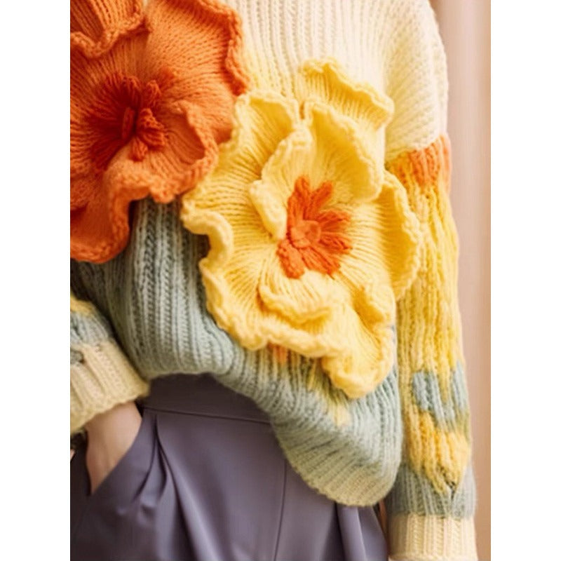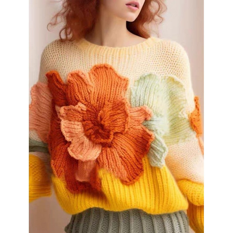 Europese goederen, prachtige zware industrie, luie stijl, abrikooskleur, driedimensionale bloemen gebreide trui, trui jas, w