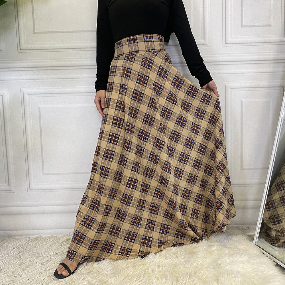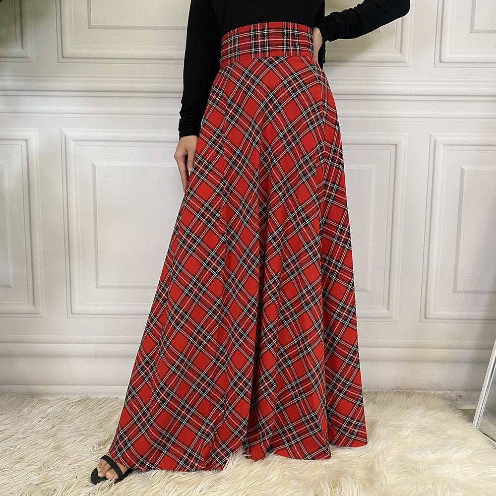 Modieuze en casual Schotse midi-rok met tailleband