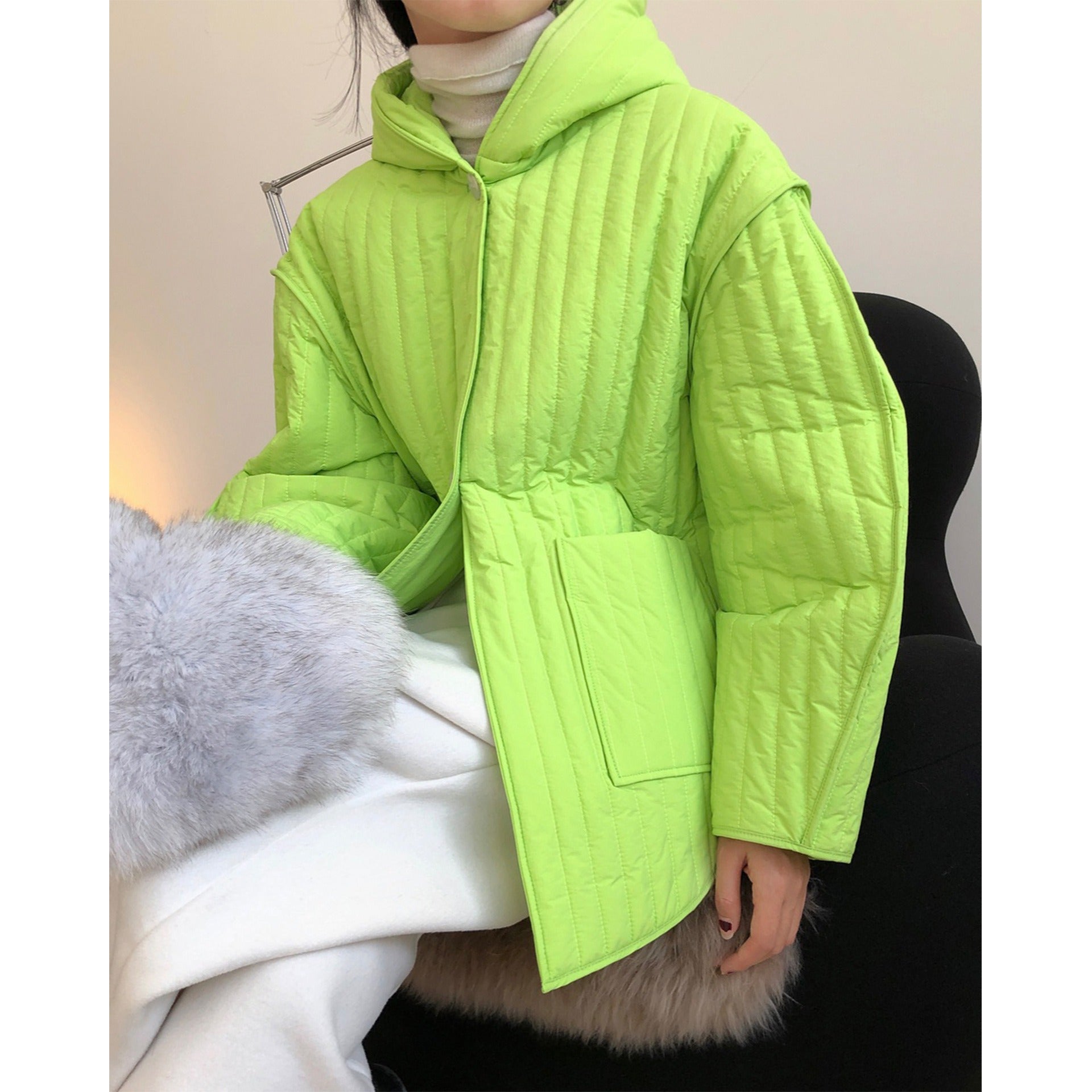 Japanse stijl lui silhouet gewatteerde capuchon katoenen jas losse en afslankende casual warme dikke jas voor vrouwen