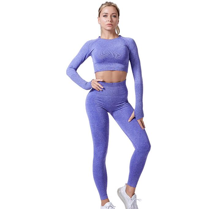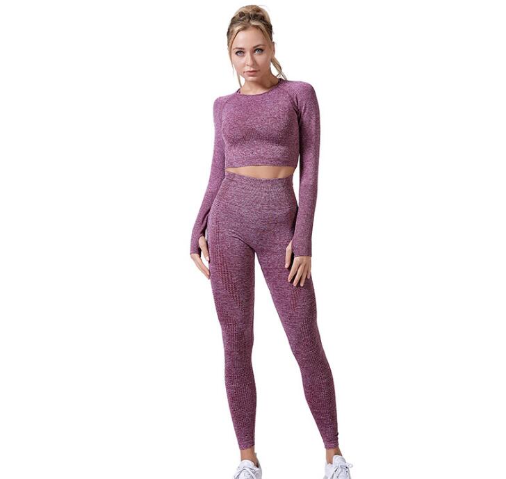 Vrouwen Vital Naadloze Yoga Set Sportkleding Fitnessleggings + Cropped Shirts Sportpak