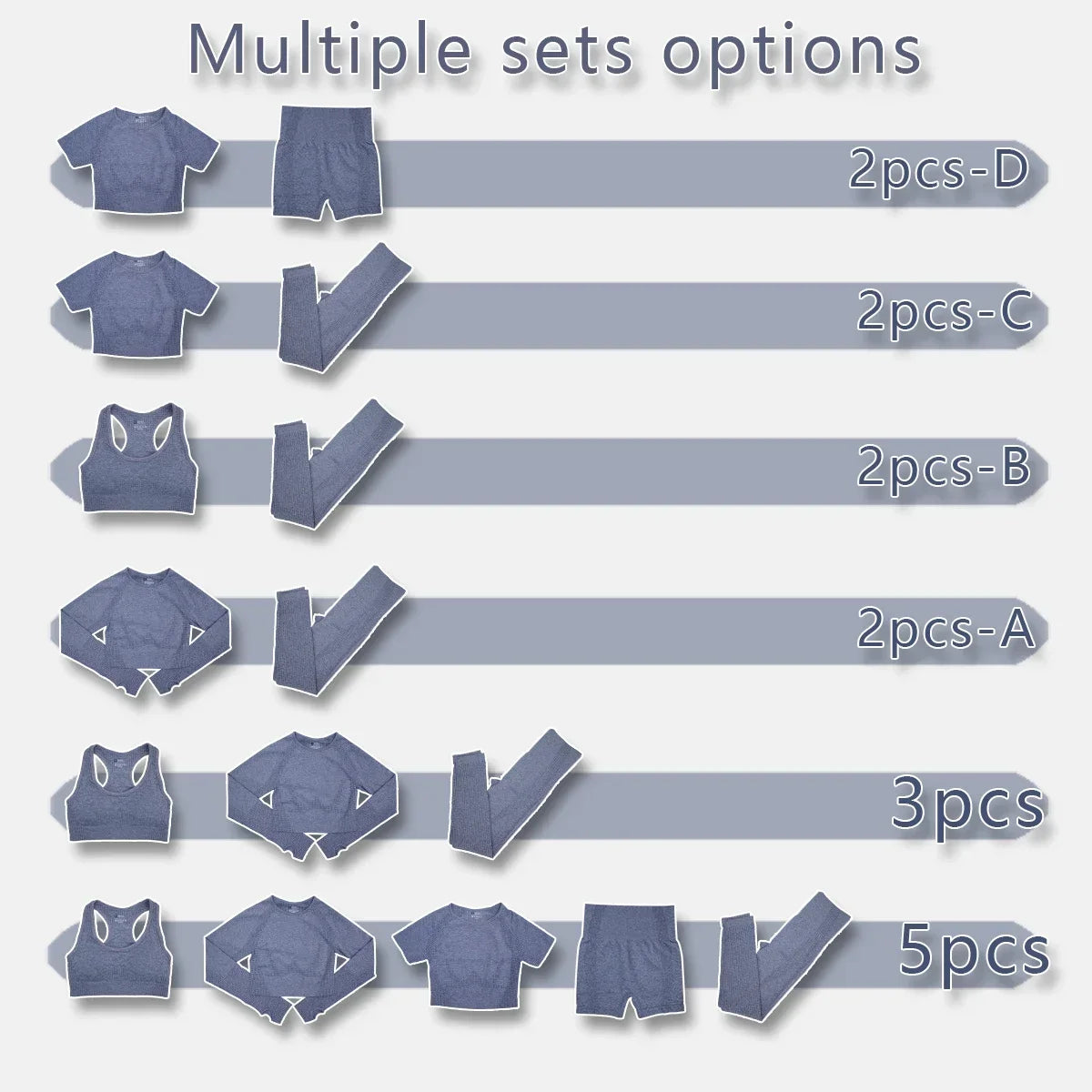 2/3/5PCS Seamless Women Yoga Set Workout Sportswear Gym Clothing Fitness Long Sleeve Crop Top High Waist Leggings Sports Suits