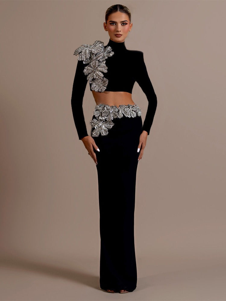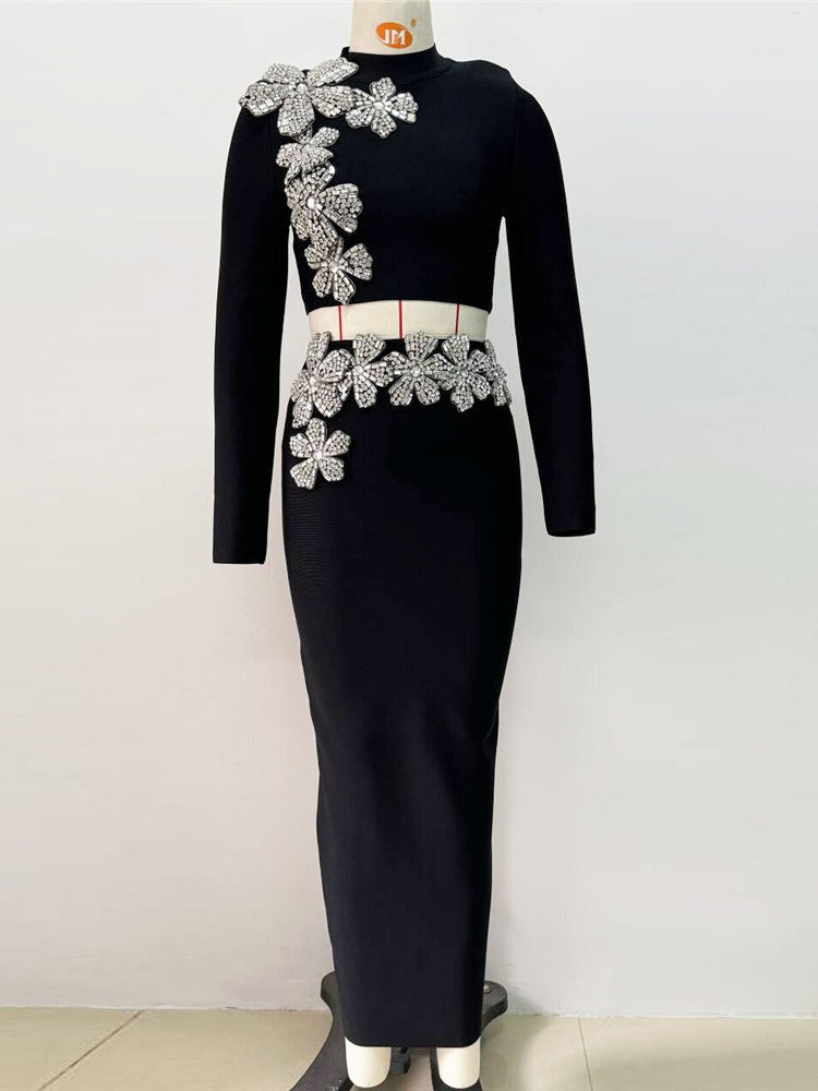 Bandage skirt set long skirt two-piece set party dress high waisted heavy industry women's clothing