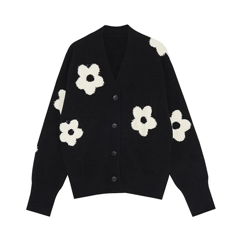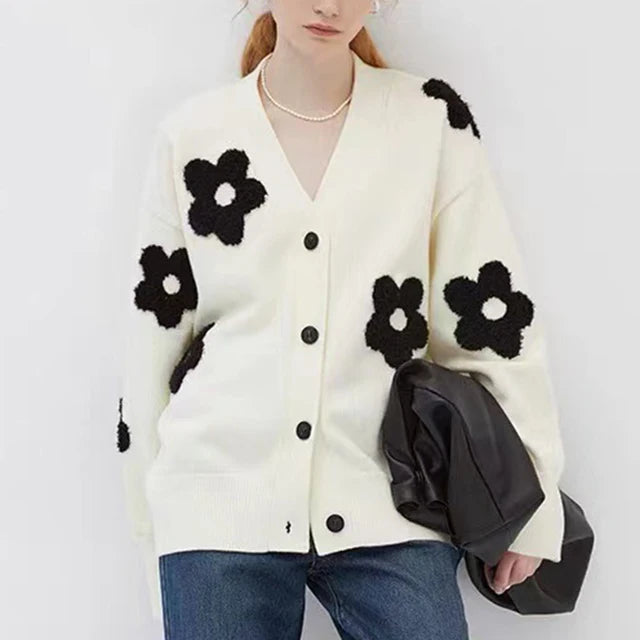 Cardigans for Women Sweater Floral Single Breasted V-Neck Chic Casual Knitted Coat Fashion Long Sleeve Female Cardigan