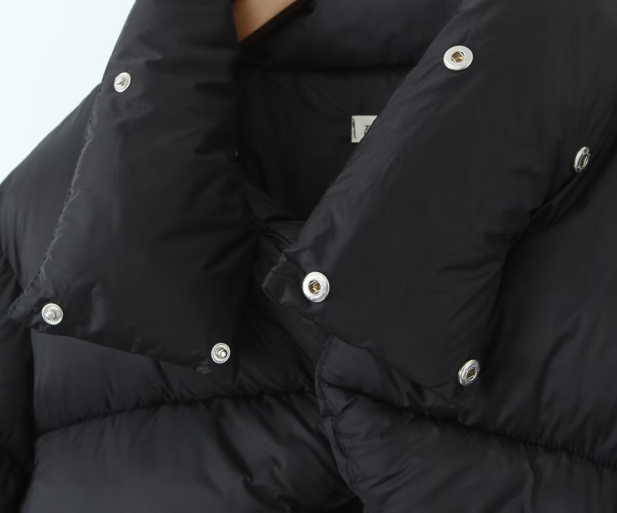 European and American spicy girl style stand up collar long sleeved bread jacket with hidden button, solid color, thick ultra sh