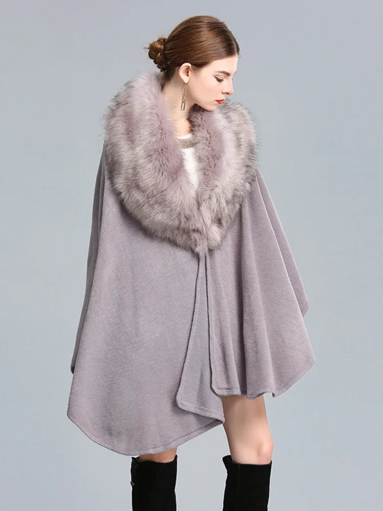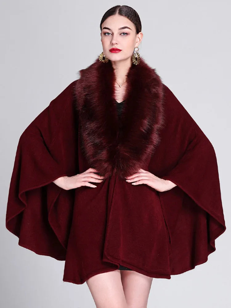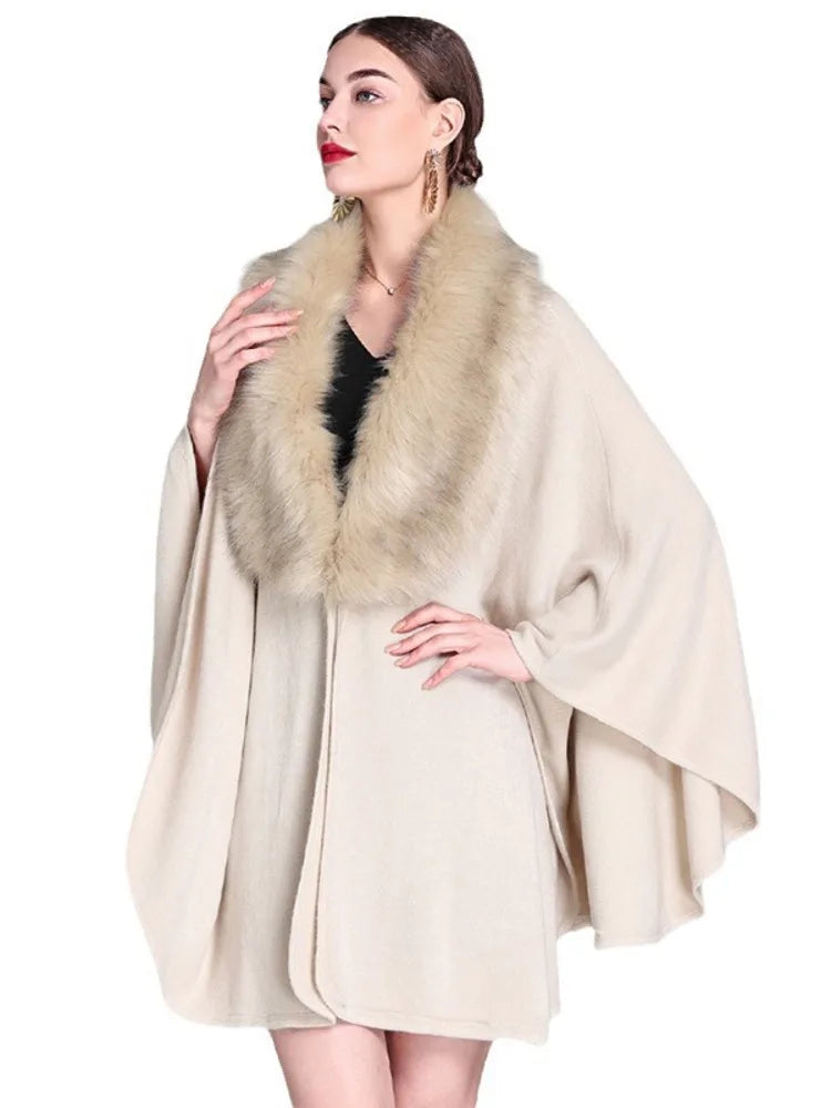 Fashion New Models Women Splicing Plush Cloak Jacket Solid Color Sleeveless Elegant Female Shawl Cloak