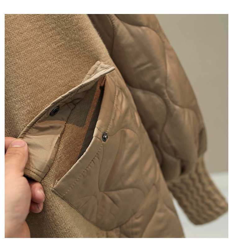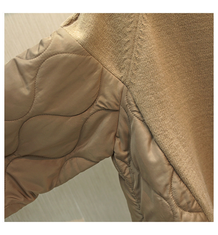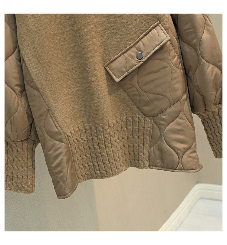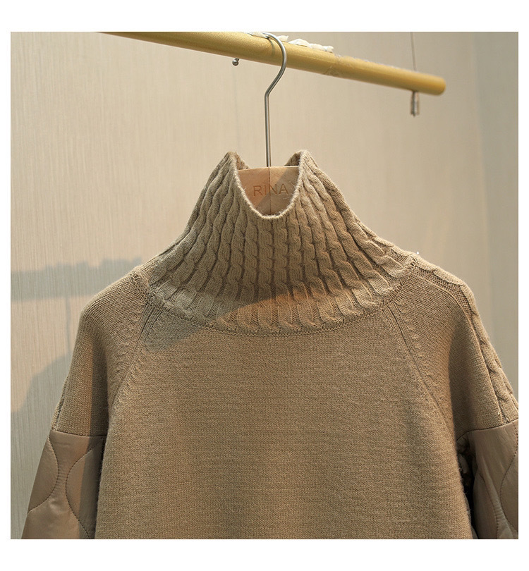 High neck loose casual sweater with down cotton splicing women's thick single pocket top