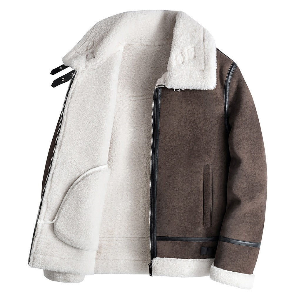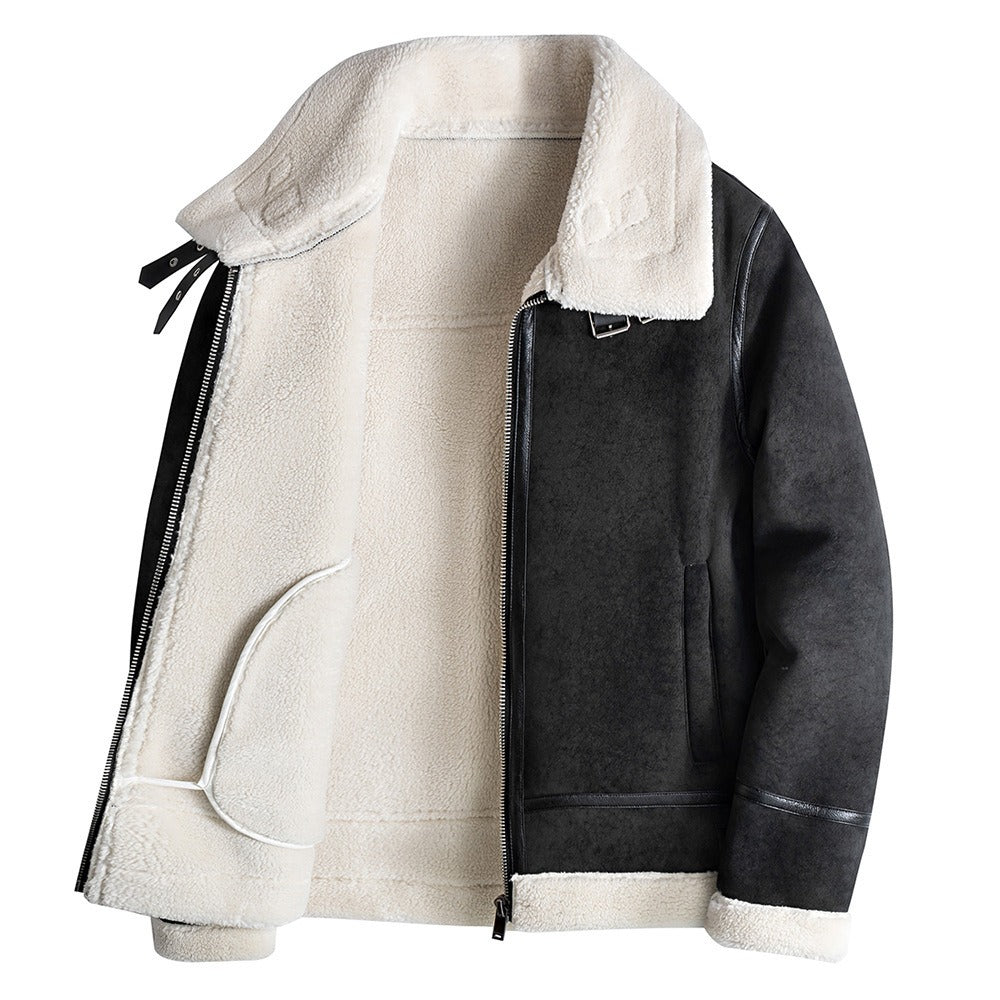 Hunting outfit fur integrated men's short motorcycle lapel flight suit handsome PU leather jacket leather jacket jacket trendy