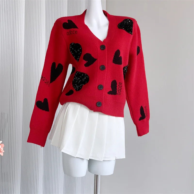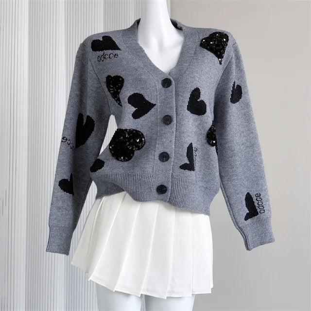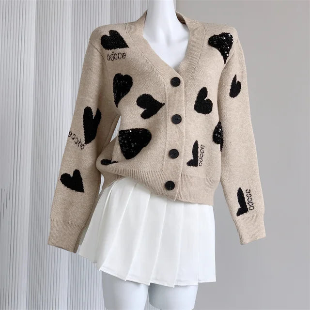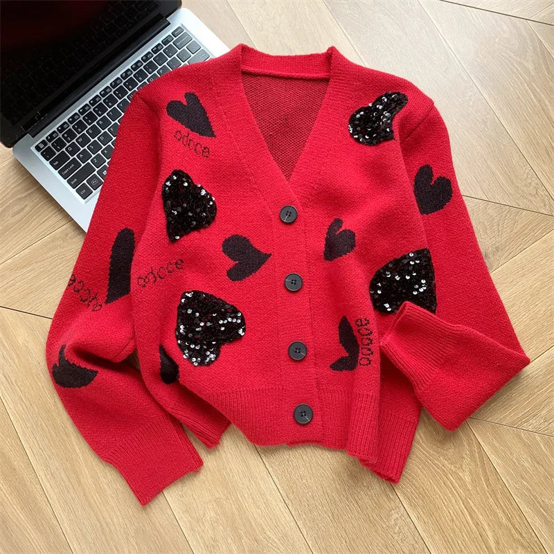 Lazy V-neck loose knit cardigan jacquard jacket, caring and fashionable sweater for women
