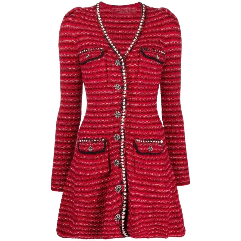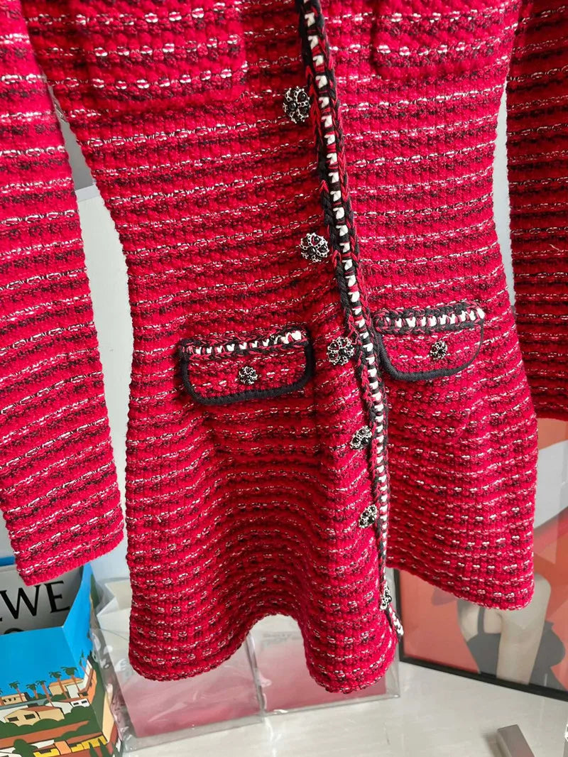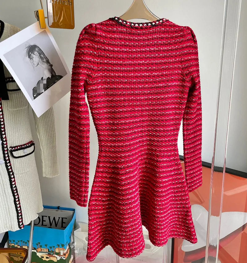 New Arrive Red Color Knitted Women Mini Dress V Neck Long Sleeve Slim Lady Short Dress