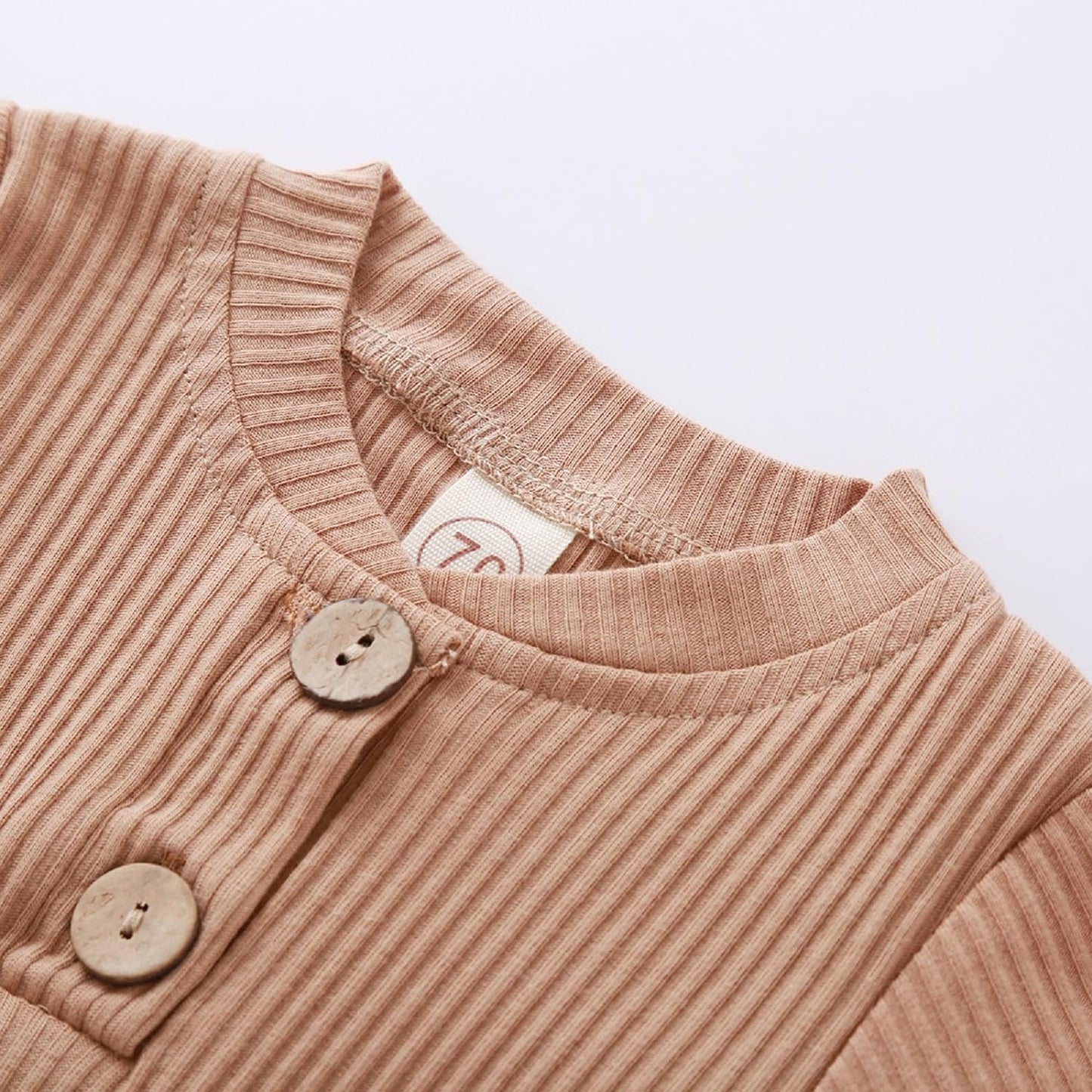 Newborn Baby Boy Girl Clothes Ribbed Knitted Cotton Long Sleeve Romper Long Pants Solid Color Fall Winter Outfits