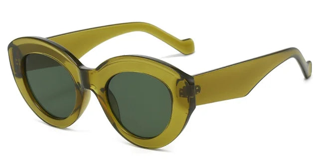 Popular Cat Eye Sunglasses Women Ins Fashion Oval Green Striped Sunglasses Lady Vintage Shades Eyewear Oculos Lunette De Soleil