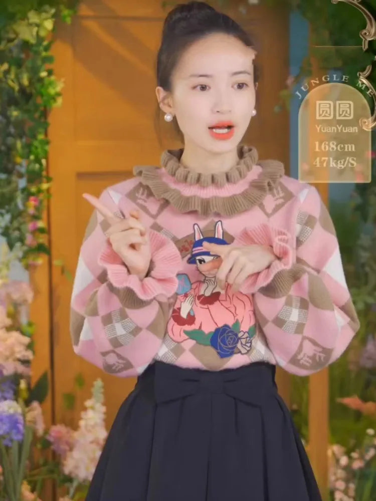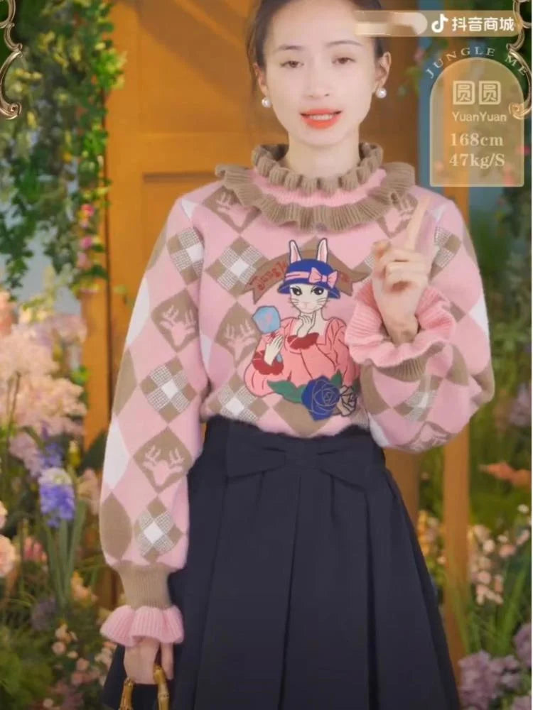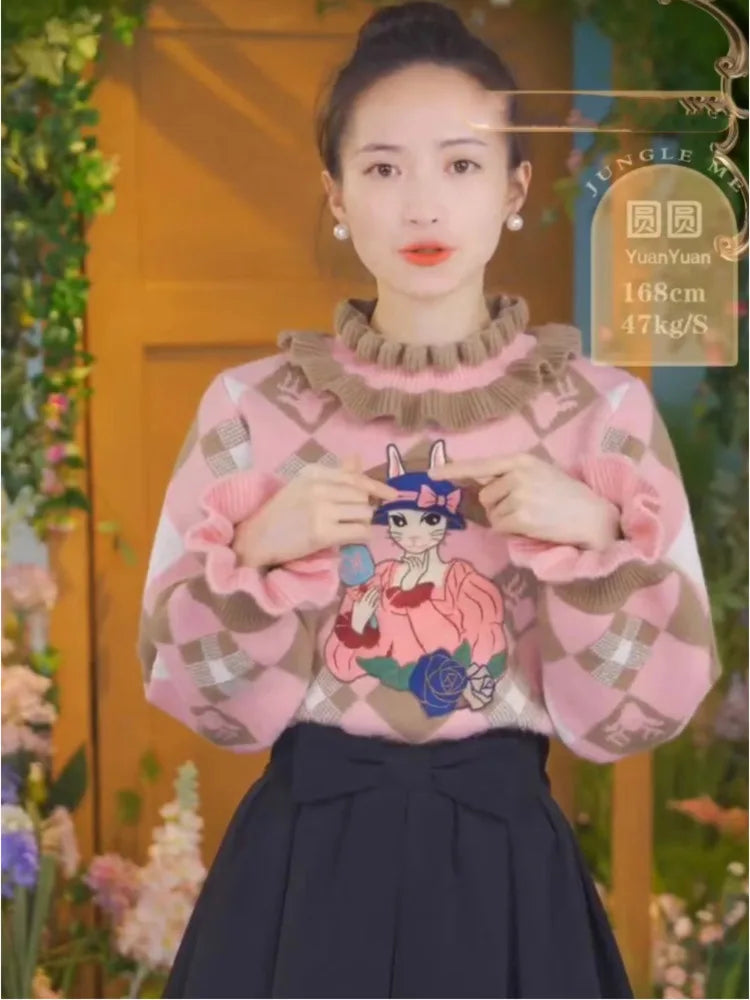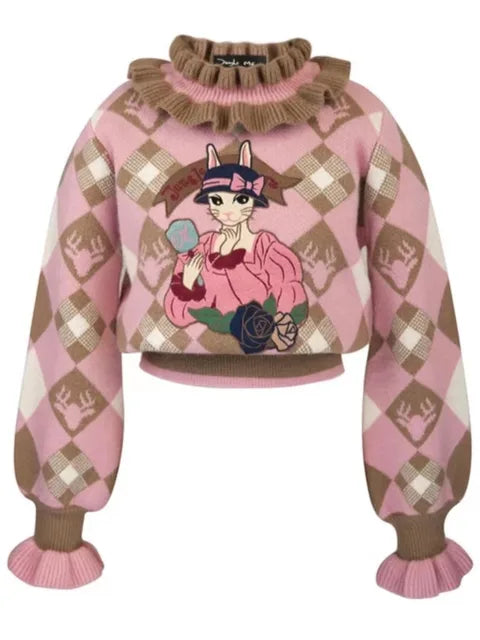 Spring New Cartoon Embroidered Knitted Sweater Women Elegant Stylish Vintage Chic Pullover Tops Long Sleeve Jumpers