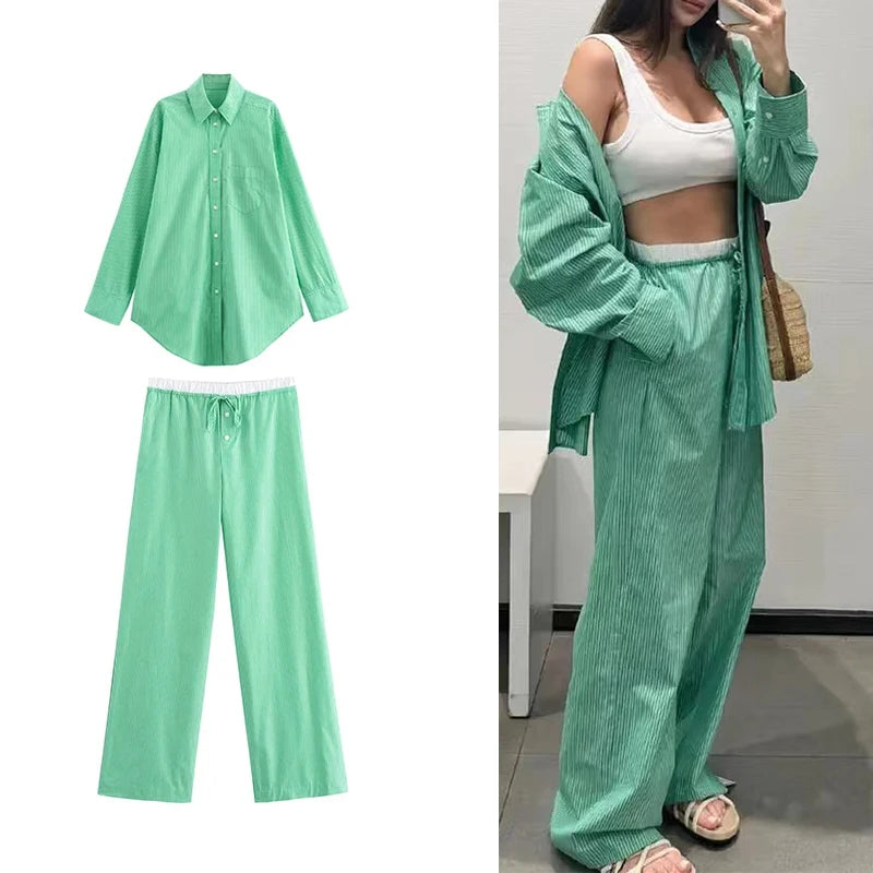 Striped Pants Sets Women's 2-piece Autumn Chic Loose Wide-leg Pants Sets Street Fashion Youth 2 Piece Sets Womens Outfits