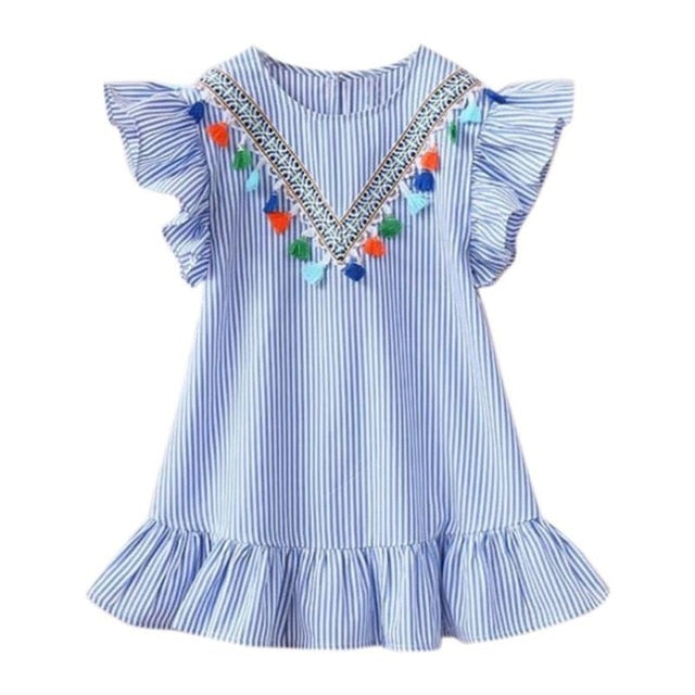 Summer Girls Tassel Flying Sleeve Dresses Stripe Cotton Cute Kids Party Dresses for Kids girls Princess Dress Tops Clothes