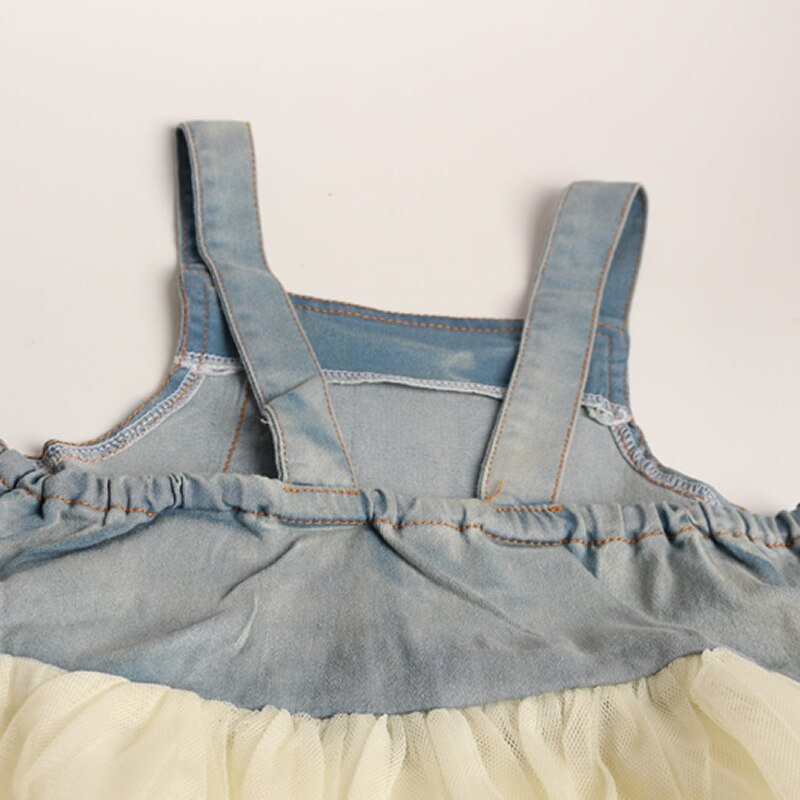 Summer Lace Denim Patch Baby Girl Dress Children Party Frock Toddler Girl Clothing Kids Princess Dress