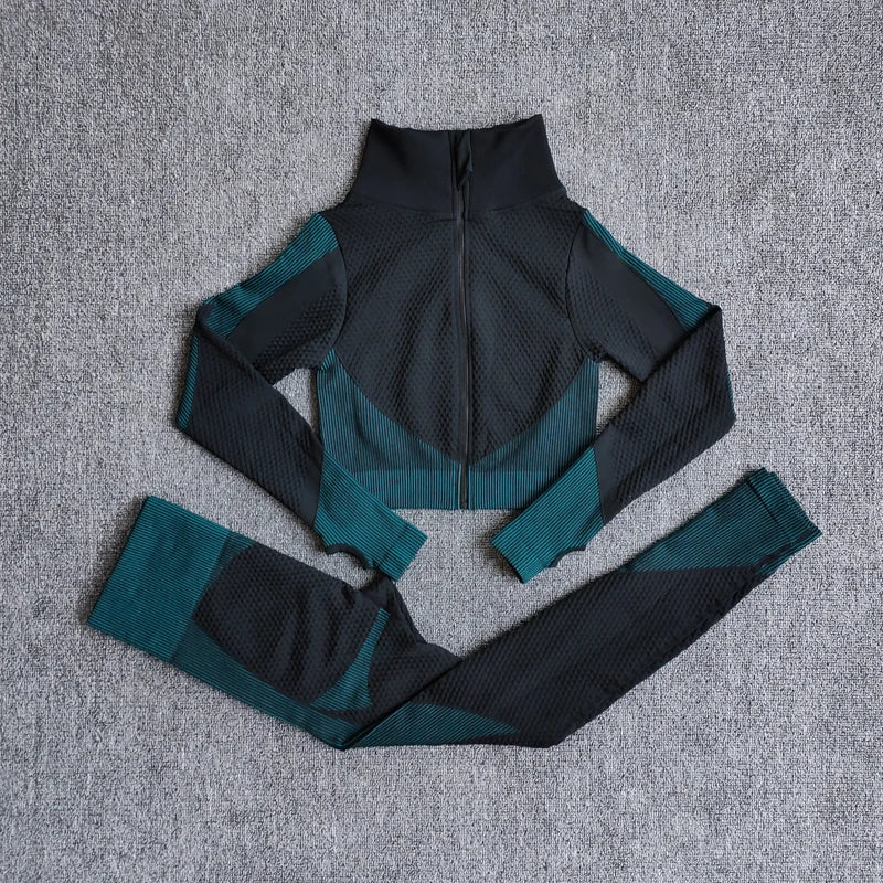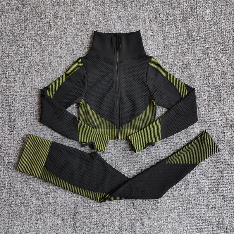 Women Fitness Sport Yoga Suit Seamless Women Yoga Sets Long Sleeve Yoga Clothing Female Sport Gym Suits Wear Running Clothes